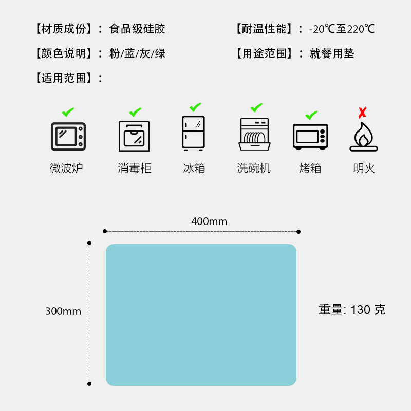 您的位置:首頁 > 產(chǎn)品中心 > 硅膠廚具用品 > 餐墊 > 硅膠餐墊 40*30食品級硅膠兒童餐墊隔熱學生桌墊