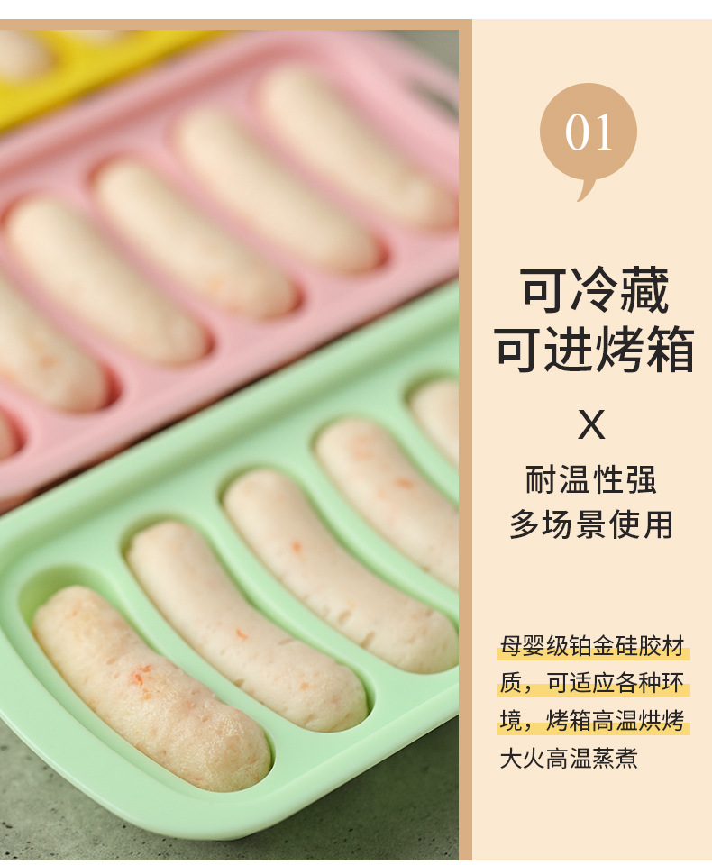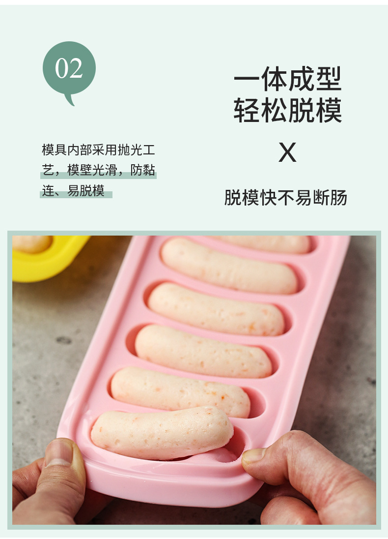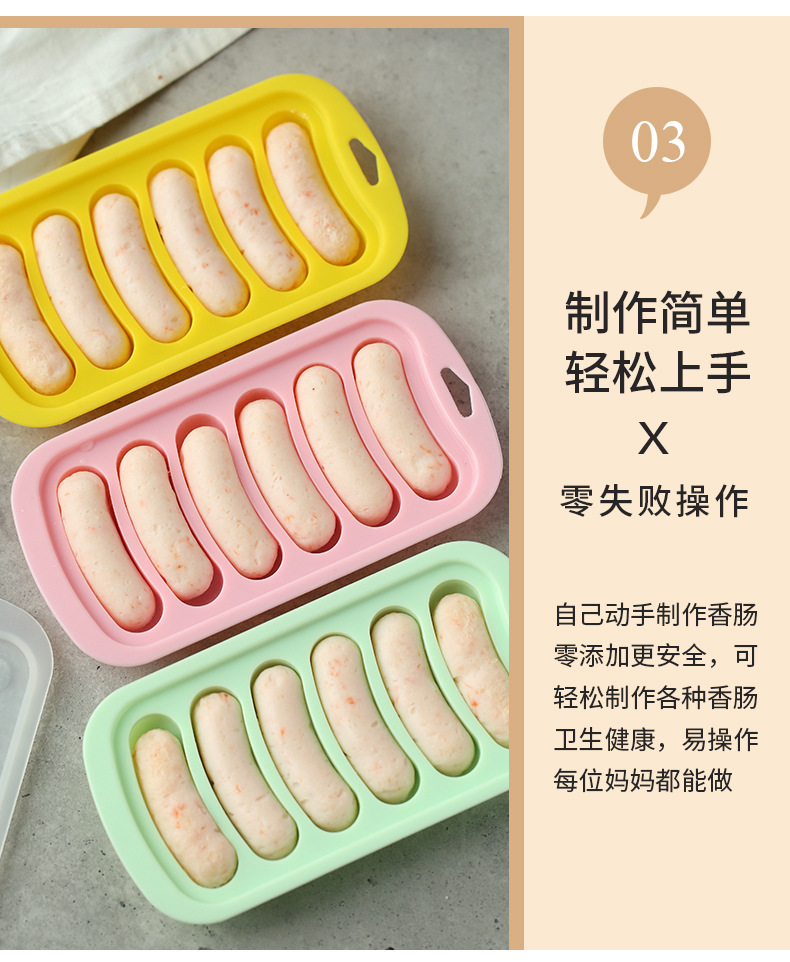 為了對(duì)付愛吃零食不吃正餐的寶寶,可以考慮買個(gè)硅膠香腸模具,記錄下配方以免下次做忘記了。豬肉+胡蘿卜+玉米+面粉+微量淀粉=糊狀→倒入模具大火燒開蒸十五分鐘。在飲食方面的應(yīng)用,一定要選擇食品級(jí)硅膠,固化后的硅膠模具具備著耐高溫性,不會(huì)對(duì)模具產(chǎn)生影響,也不會(huì)影響美食的味道;一定要選擇正規(guī)食品級(jí)硅膠,正規(guī)的硅膠廠,正規(guī)的硅膠模具制品!