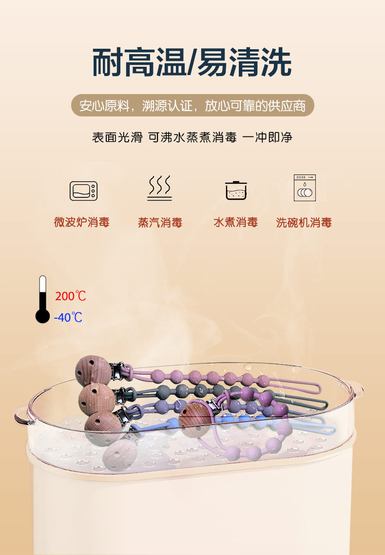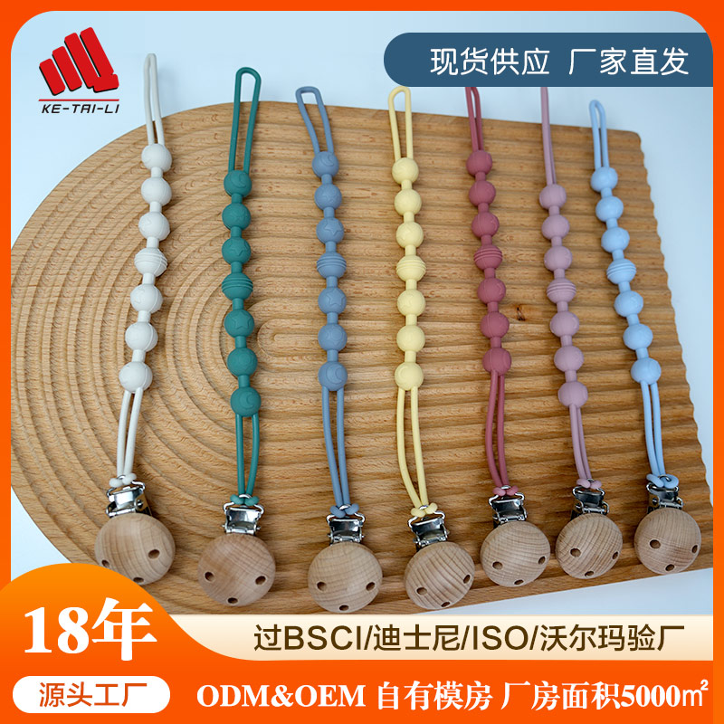 材質(zhì):硅膠奶嘴鏈+櫸木夾子