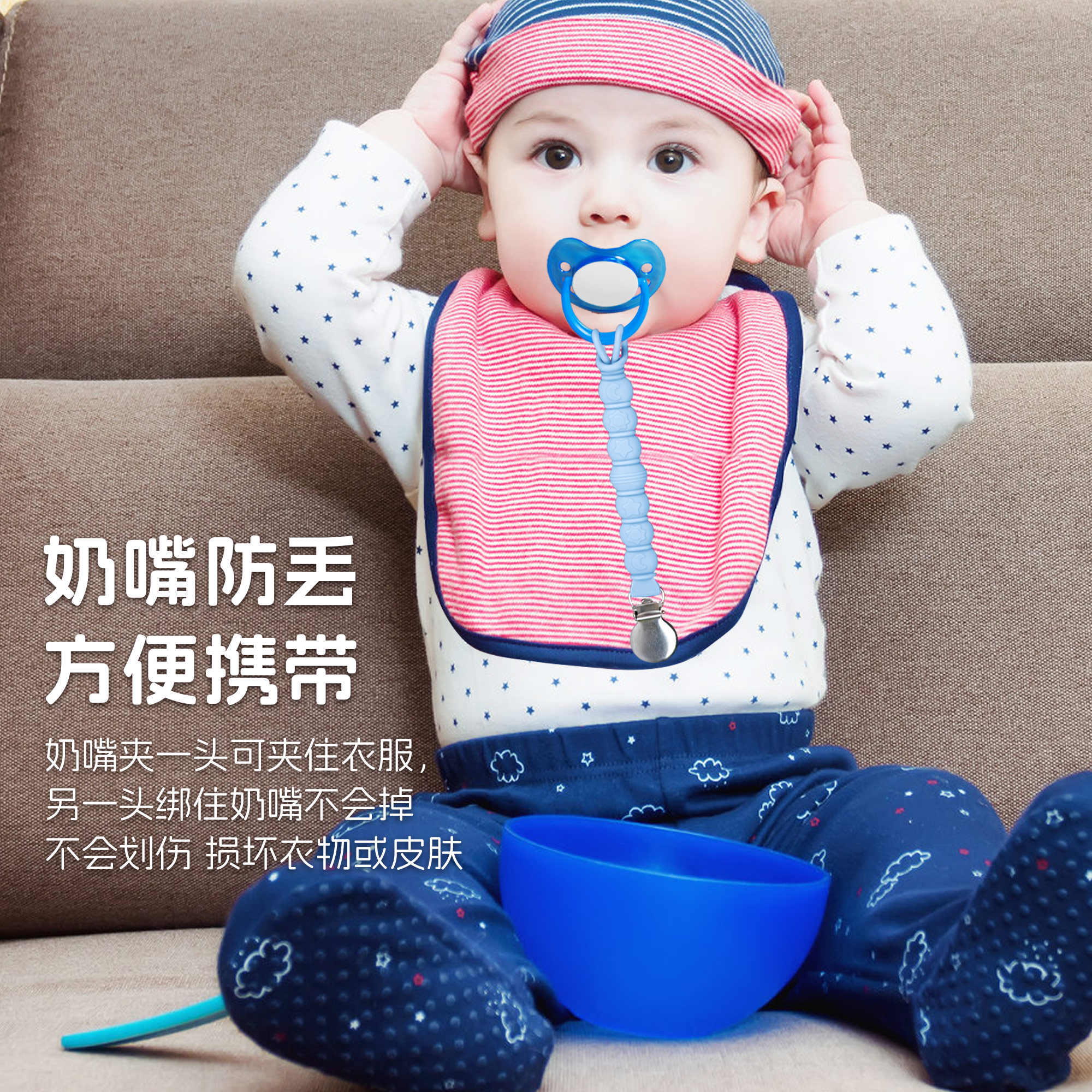 用途:奶嘴防掉,牙膠防掉