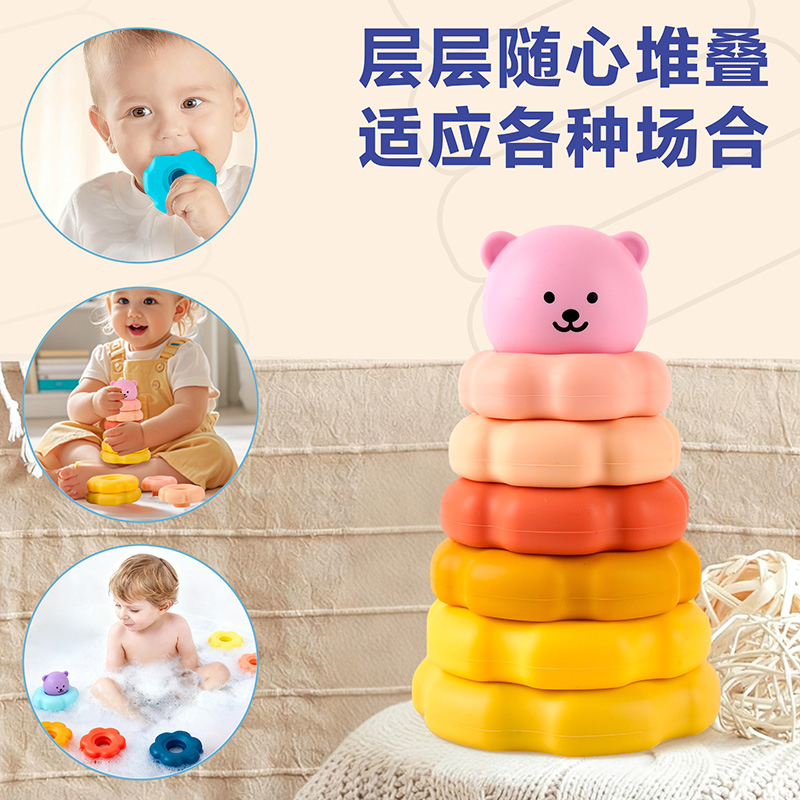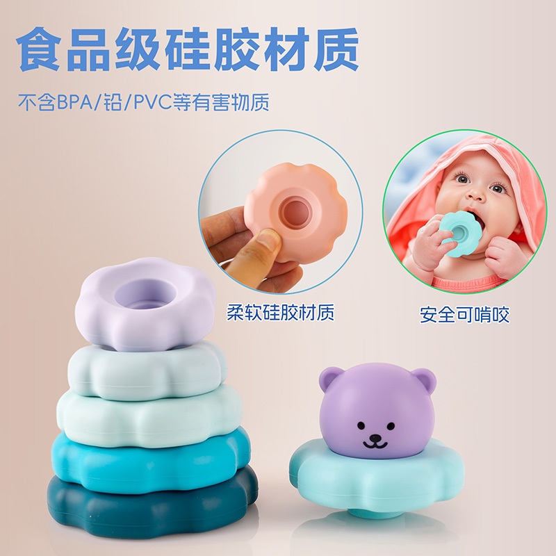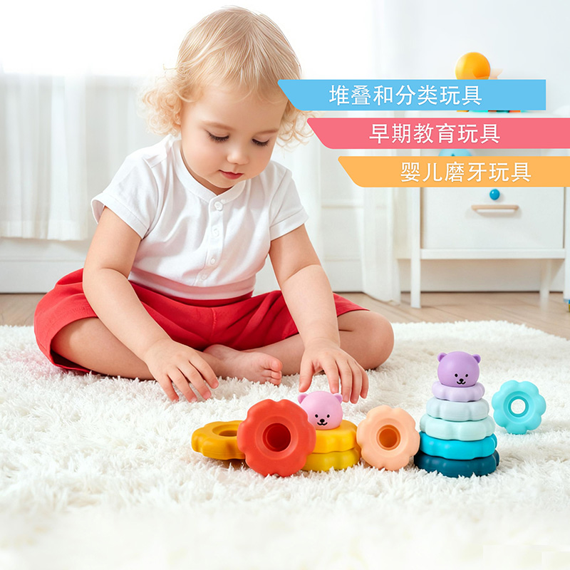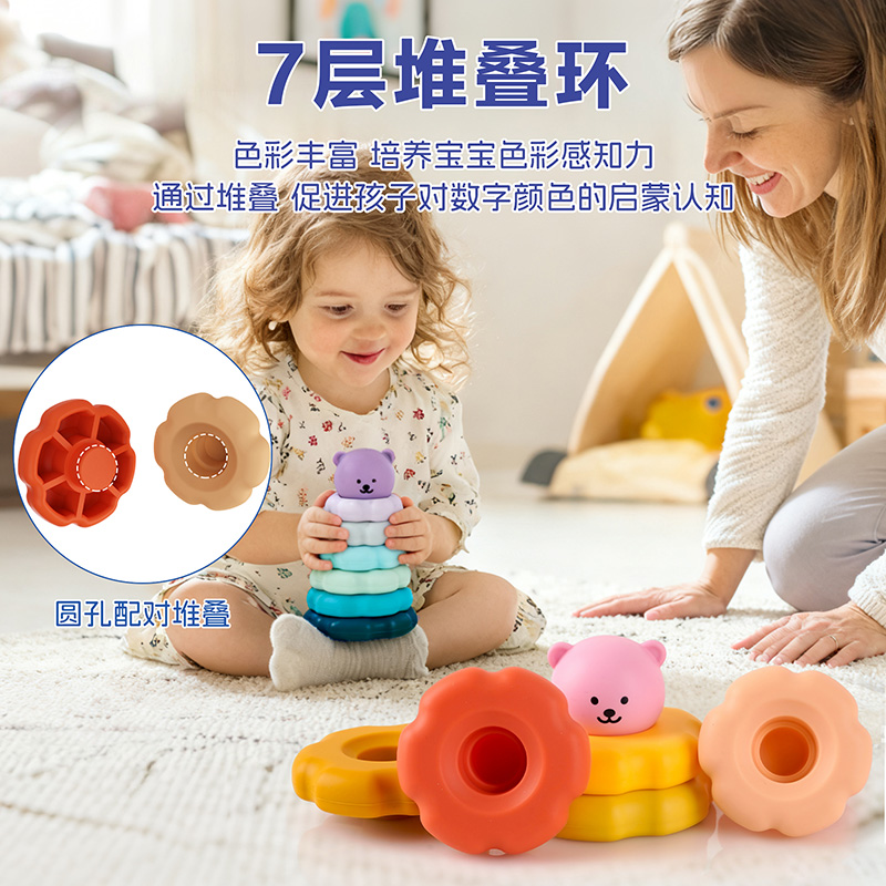 3-6歲寶寶益智硅膠疊疊樂六瓣花早教益智玩具硅膠積木