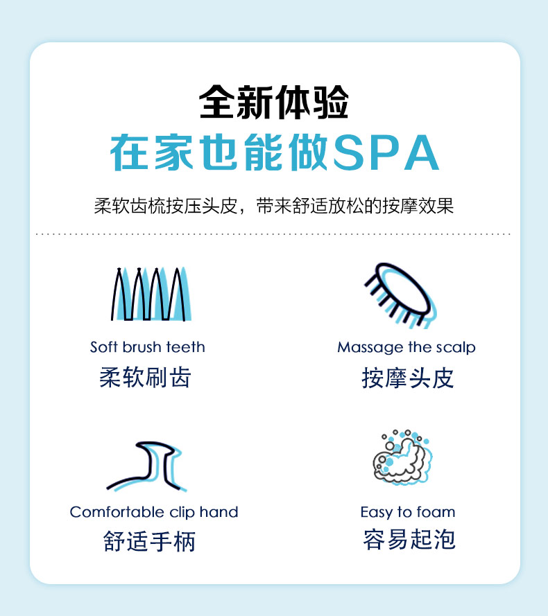 簡(jiǎn)介:快速起泡,深層清潔發(fā)根,輕柔按摩頭部,放松舒適