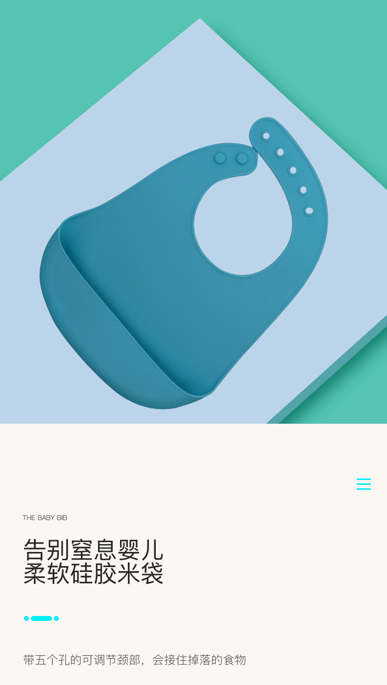 您的位置:首頁 > 產(chǎn)品中心 > 硅膠嬰童用品 > 口水兜 > 兒童硅膠口水兜定制,寶寶吃飯輔食神器硅膠圍兜圍嘴代加工