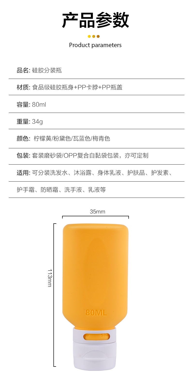 您的位置:首頁 > 產品中心 > 硅膠家居用品 > 硅膠乳液分裝瓶旅行便攜包裝80ml擠壓式乳液化妝品收納瓶