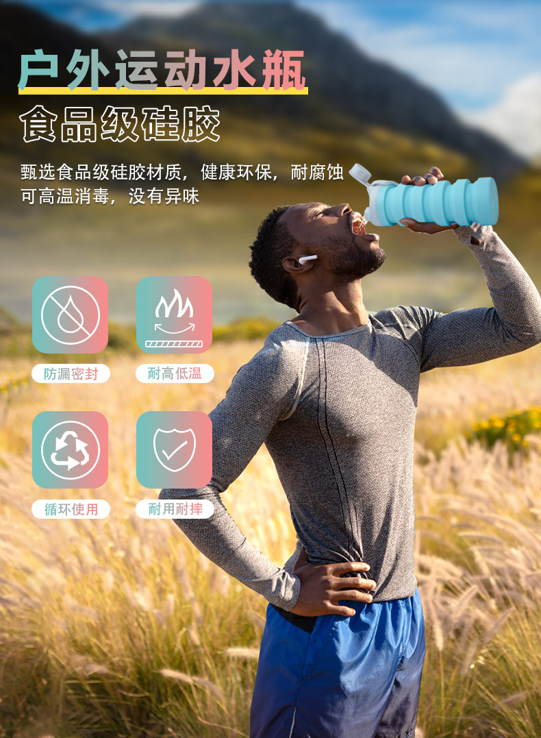 您的位置:首頁 > 產(chǎn)品中心 > 硅膠家居用品 > 折疊水瓶 > 定制高顏值水壺杯水瓶戶外騎行水壺旅行健身運(yùn)動水杯便攜折疊水壺